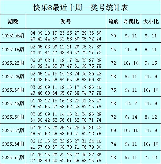 福彩自得8第2025171期开奖雅致:01 09 16 20 21 25 27 30 32 36 37 38 40 50 52 57 66 68 75 79,其中奖号奇偶比为9:11,大小比为7:13,012路比为8:7:5,首尾间距为78。