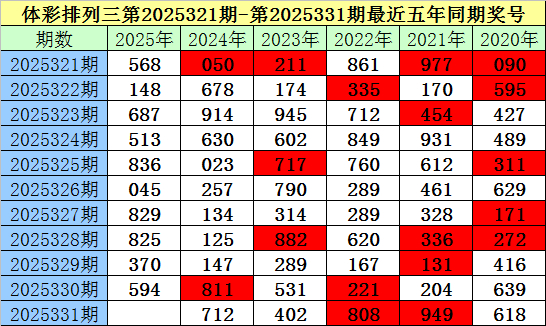 夏姐体彩胪列三第2025331期奖号推选: