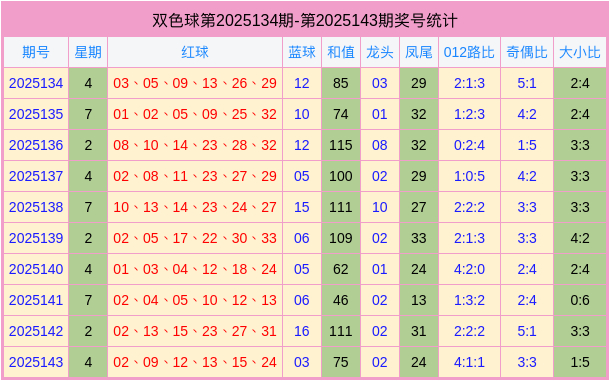 双色球2025143开奖号码为:02、09、12、13、15、24 + 03。