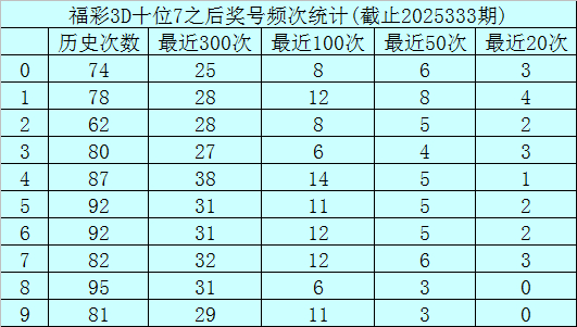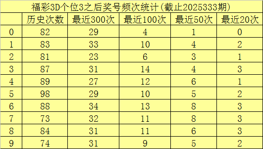 个位杀号:上期个位奖号为3,历史上个位奖号3共开出840次,最近100次个位奖号3出当前,其下期号码0-9开出次数诀别为:奖号3开出14次,6开出13次,4开出12次,7、8开出11次,1、5开出10次,9开出9次,2开出6次,0开出4次。
