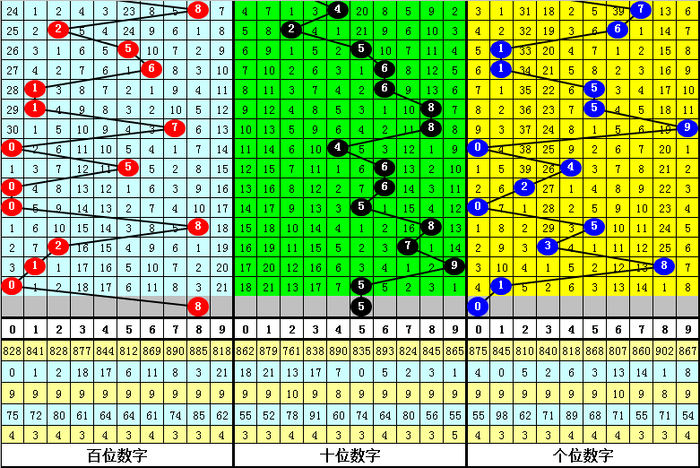 在单选号码0-9方面,其中阐扬最热的三码为:568,本期预测这三码中落号,胆码参考:5;阐扬最冷的三码为:034,本期这三码不成能同期出现,必杀一码:4。