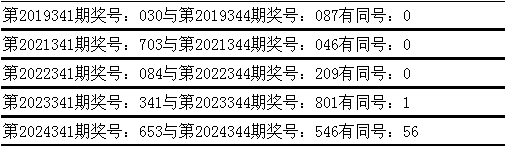 与前期历史同时奖号对比分析,在最近五年开奖中,第341期同时奖号与第344期同时奖号王人出现了疏通号码:
